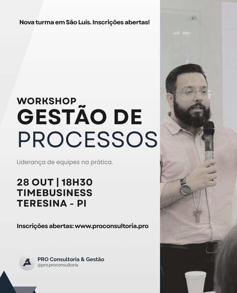 Os workshops e seminários promovidos pela PRO Consultoria & Gestão tem o objetivo de capacitar empresários e gestores de diferentes segmentos em como organizarem e otimizarem seus negócios por meio de uma gestão mais consciente e munida de ferramentas e metodologias condizentes com a natureza e a maturidade de seus negócios.